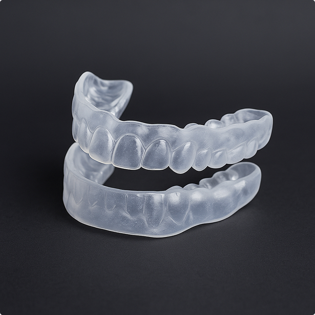 A night mouthguard — also called a mouth guard for sleeping — is a removable device worn over the teeth during sleep. Its main function is to protect your teeth and jaw from the effects of bruxism, or teeth grinding. By absorbing pressure and preventing direct contact between the upper and lower teeth, this device helps: